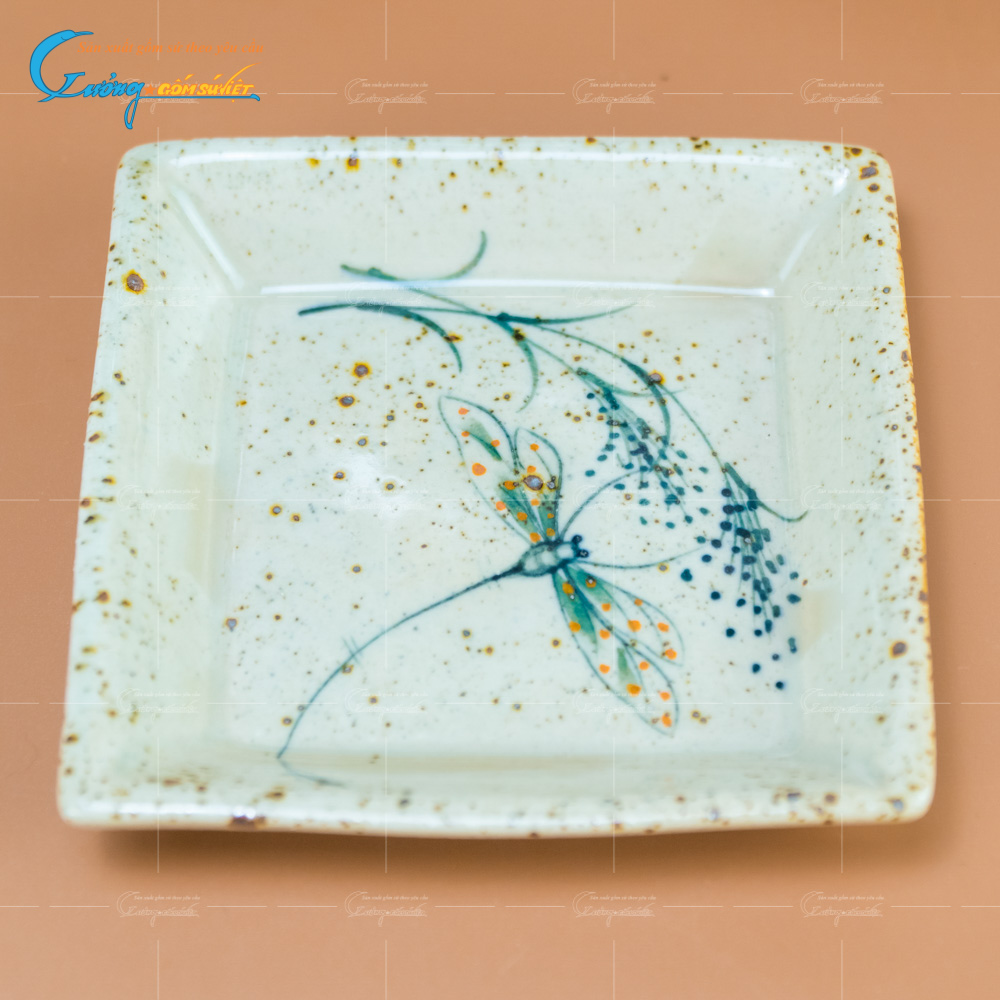 Những hình ảnh chú chuồn chuồn bay lượn cùng ngọn cỏ hòa tan nét mềm mại vào từng chiếc bát, chiếc đĩa. Sự tỉ mỉ trong từng sản phẩm dù là nhỏ nhất của nghệ nhân làm bộ bát đĩa thêm phần tinh tế. Trọn bộ men tiêu gồm những vật dụng từ cơ bản nhất, hoàn toàn có thể đồng bộ tất cả vật dụng trên bàn ăn.