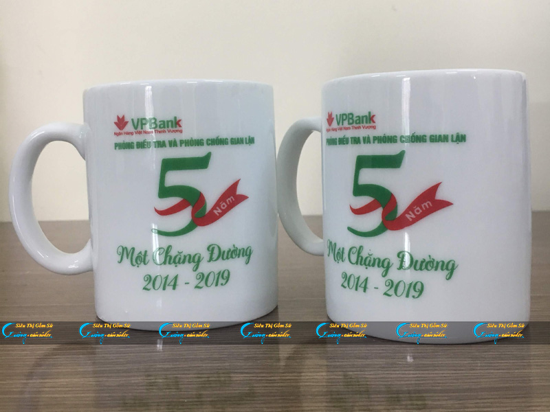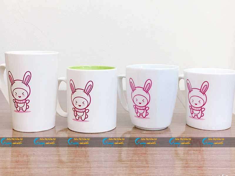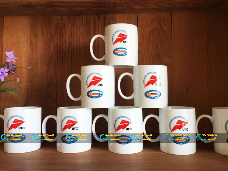 Cốc sứ có lớp men trắng bóng, nhẵn mịn, giúp việc in logo lên sản phẩm dễ dàng hơn. Màu sắc in lên sẽ không bị phai trong quá trình sử dụng do được nung ở nhiệt độ cao.