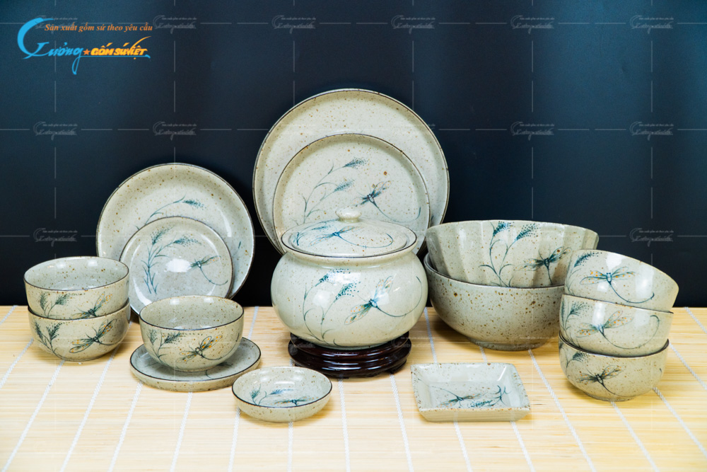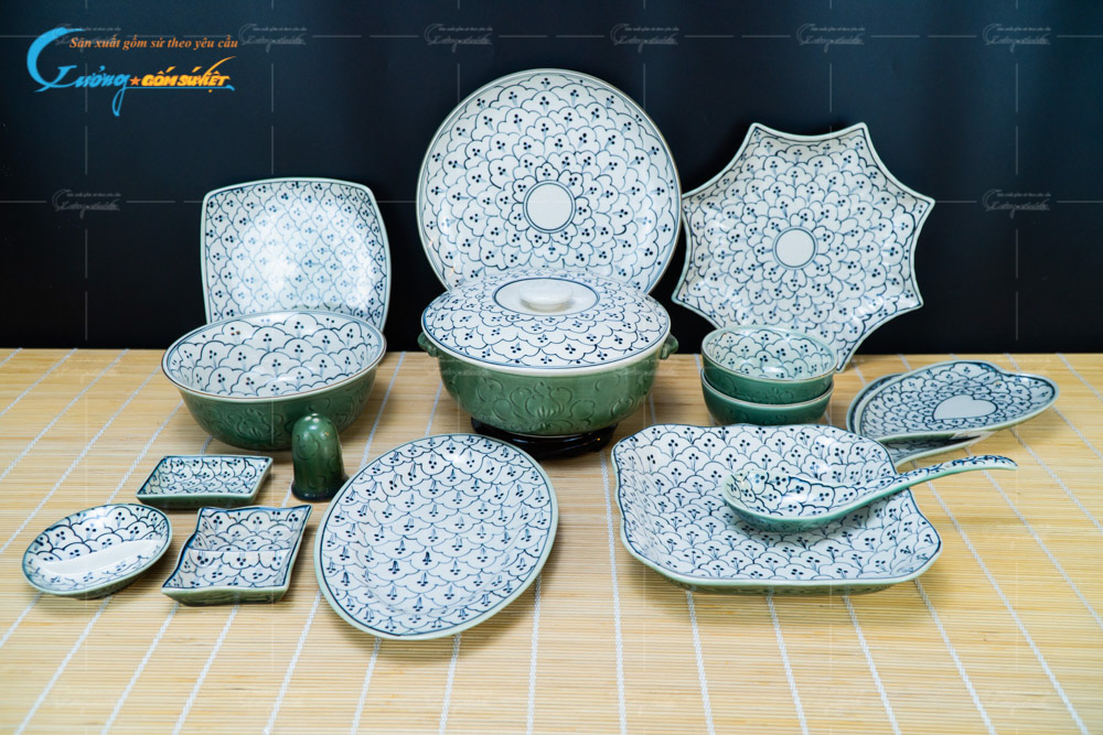- Tôn vinh Họa tiết Truyền thống: Thổ Tú tập trung vào những bộ sưu tập mang hồn cốt dân tộc (Sen Xanh, Chuồn Trúc). Các họa tiết này được nghệ nhân vẽ tay dưới men, bảo tồn kỹ thuật cổ điển, mang lại giá trị tinh thần cao và tính độc bản cho không gian sống.