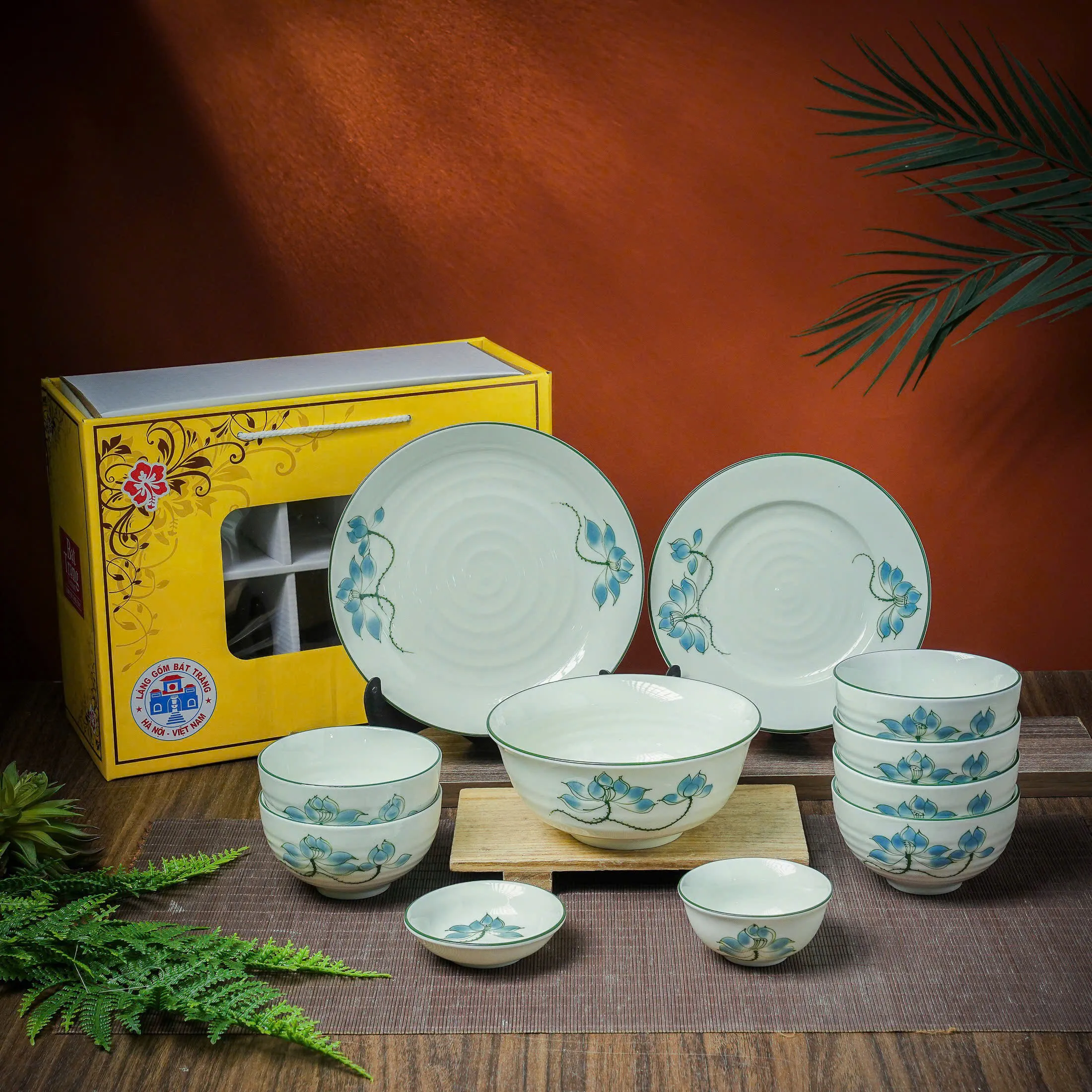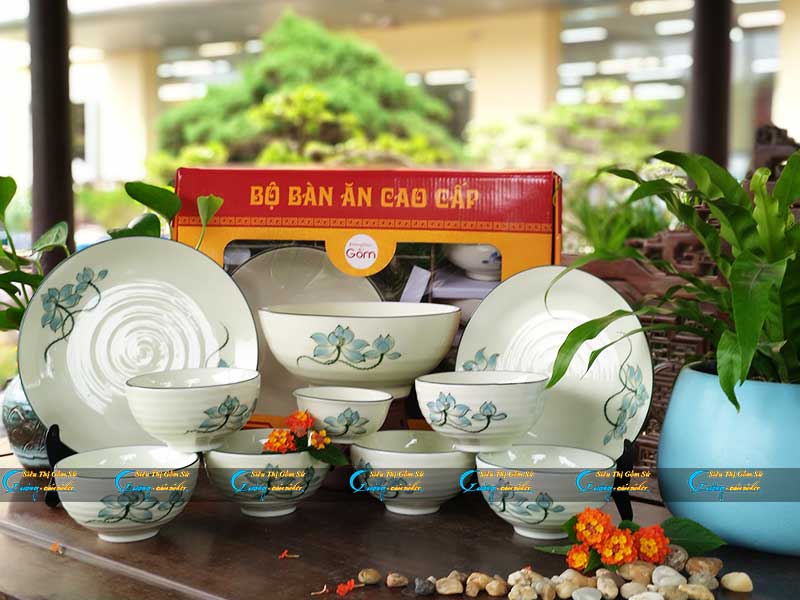 Bộ bát đĩa hoa sen xanh Bộ bát đĩa men nâu Bát Tràng Bộ Bát đĩa Vẽ bèo – xanh đồng Màu Sắc Họa Tiết Men Tiêu Nhã Nhặn, Lịch Sự