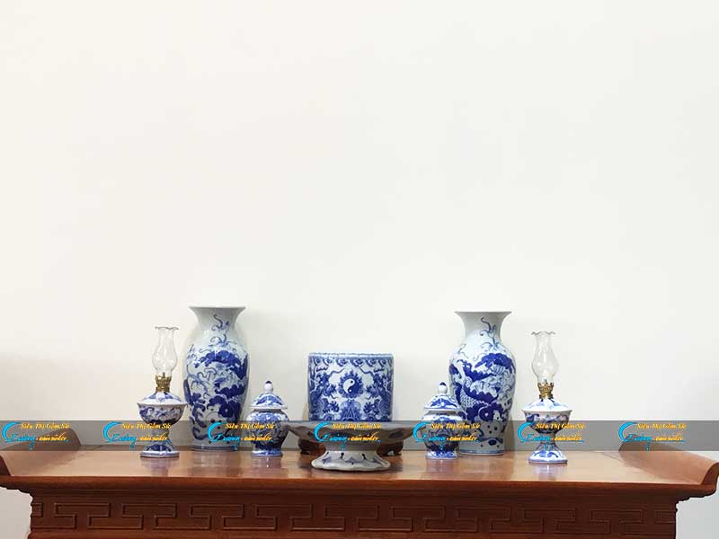 Dòng men lam là dòng men cổ được sử dụng đầu tiên tại Bát Tràng, với chất men đẹp, trắng trong kết hợp với bàn tay của các nghệ nhân gốm Bát Tràng khiến sản phẩm đồ thờ sứ càng trở nên đẹp mắt. Các màu xanh đều được thể hiện rõ nét, kết hợp tinh tế, ko bị lẫn màu vào nhau