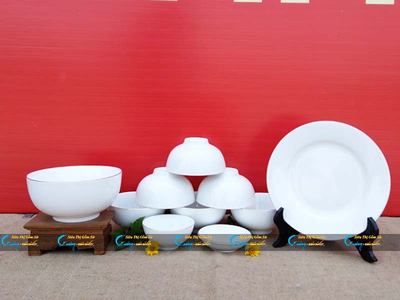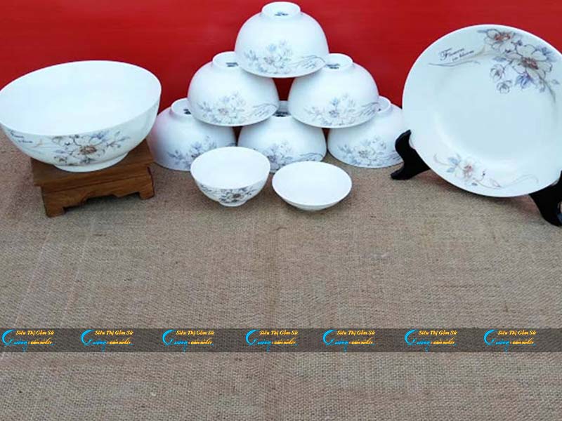 Bộ bát đĩa sứ Minh Châu cũng có nhiều kiểu dáng, mẫu mã đa dạng. Sản phẩm có nguyên liệu sản xuất từ tro xương động vật trên dây chuyền công nghệ theo tiêu chuẩn châu Âu nên có gam màu trắng ngà, mỏng nhẹ, độ bền cao, độ cứng tốt. Hơn nữa, sản phẩm cũng dễ dàng in ấn logo làm quà tặng 20/10.
